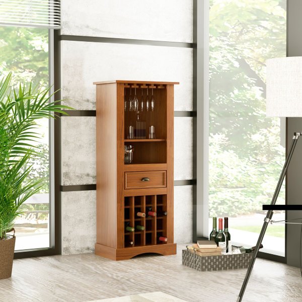 A adega possui suporte para taças, uma prateleira, uma gaveta e 16 nichos para colocar garrafas, além de permitir que você harmonize-o com a decoração da sua casa.