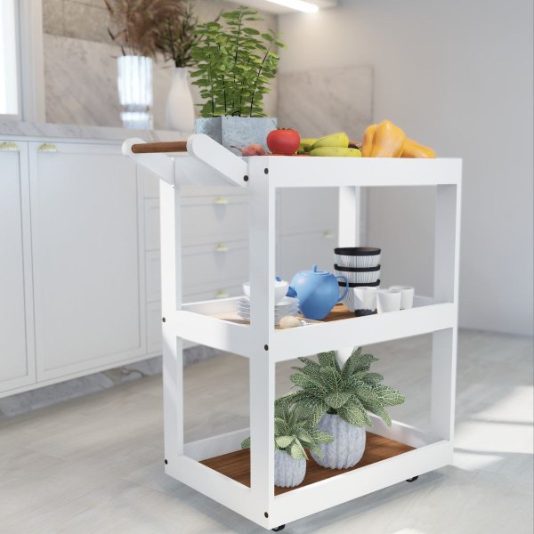Por ser um móvel multifuncional, pode ser utilizado em sua cozinha, como fruteira, carrinho de chá, como apoio na sala de jantar ou de estar, até mesmo no hall de entrada ou como carrinho de apoio para churrasco. Ideal para organizar frutas, potes ou objetos decorativos, louças, além disso, possui quatro rodinhas para que possa facilitar no seu deslocamento.