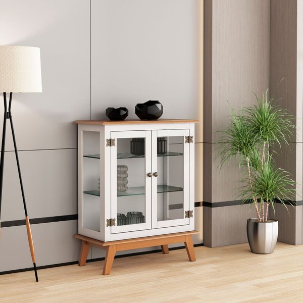 Mini Cristaleira de Madeira Maciça com Prateleiras de Vidro New Veneza Branco