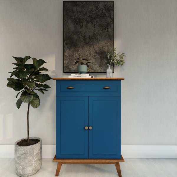Balcão Sapateira Multiuso de Madeira Veneza 2 Portas 1 Gaveta Azul