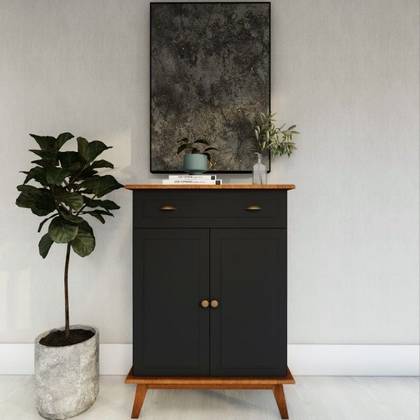 Balcão Sapateira Multiuso de Madeira Veneza 2 Portas 1 Gaveta Preto