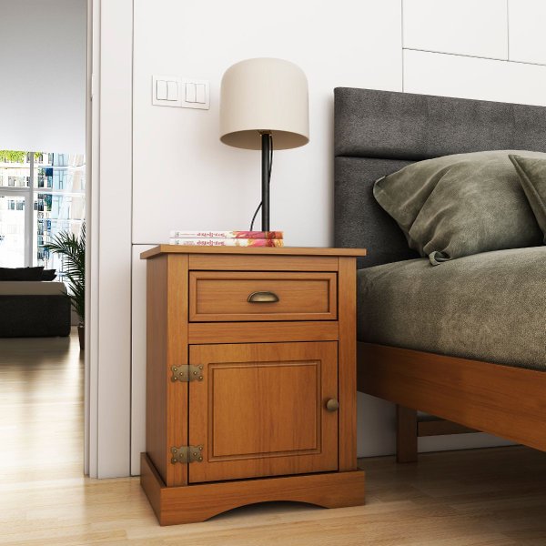 Mesa de Cabeceira 1 Gaveta 1 Porta Madeira Las Vegas Amêndoa