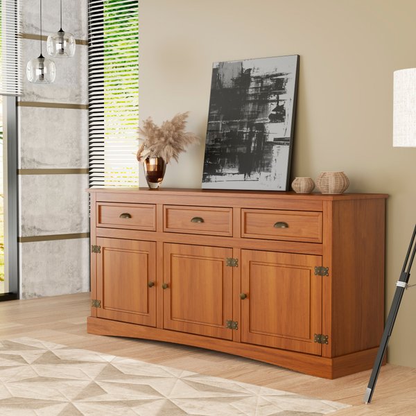 Balcão Buffet Aparador 3 Portas 3 Gavetas Madeira Las Vegas Amêndoa