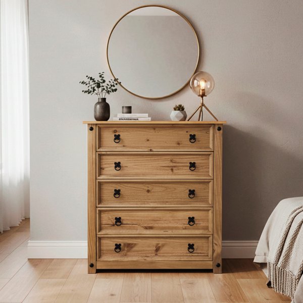 A Cômoda Dortmund em Madeira é a escolha ideal para quem busca um móvel durável, funcional e com design acolhedor. Com acabamento em cera mel, ela realça os veios naturais da madeira, trazendo um toque rústico contemporâneo que valoriza qualquer ambiente.