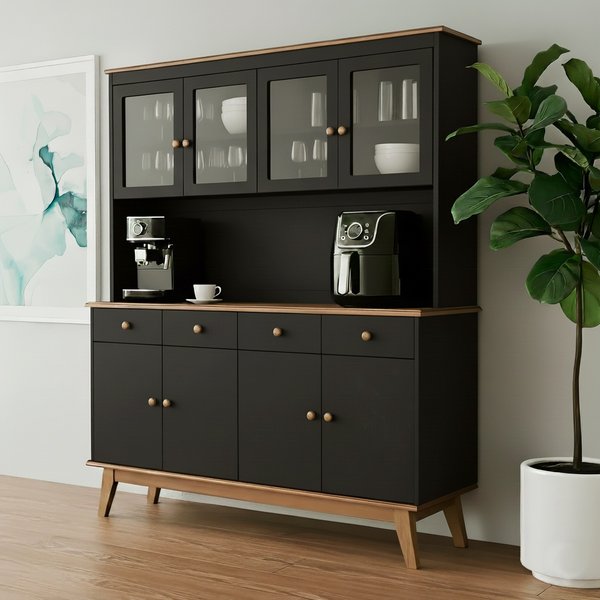 • ✔️ 4 portas superiores com vidro para expor louças, taças e objetos decorativos.