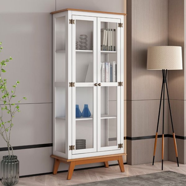Cristaleira de Madeira Maciça 2 Portas Vidro New Veneza Branco