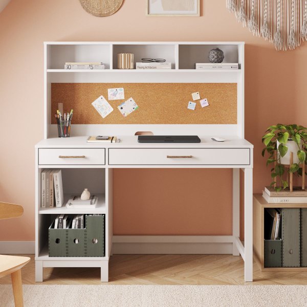 Mesa Escrivaninha 2 Gavetas 5 Nichos com Quadro de Cortiça Denali Branco