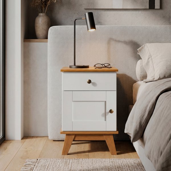 • - 1x Mesa de Cabeceira 1 Gaveta 1 Porta