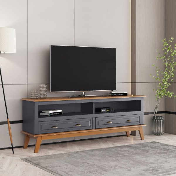 Rack 2 Gavetas 2 Nicho Madeira 65'' New Veneza Cinza