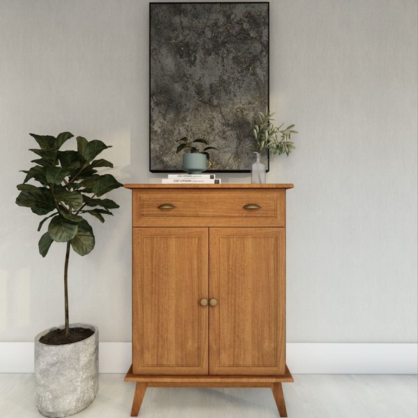 Balcão Sapateira Multiuso de Madeira Veneza 2 Portas 1 Gaveta Amêndoa