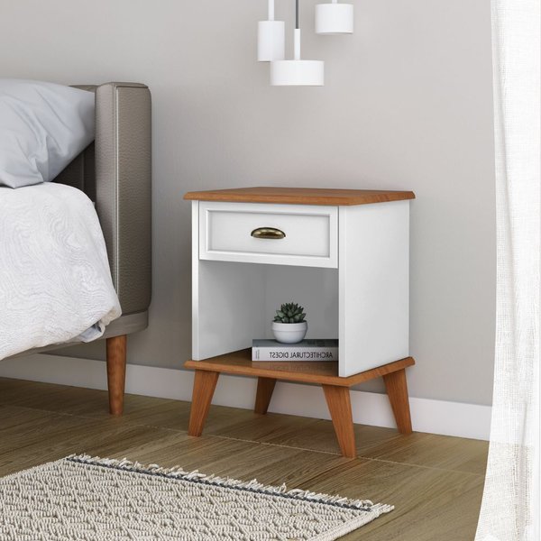 Mesa de Cabeceira 1 Gaveta 1 Nicho Madeira Veneza Branco
