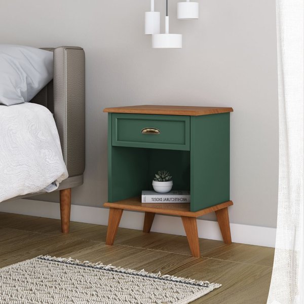 Mesa de Cabeceira 1 Gaveta 1 Nicho Madeira Veneza Verde